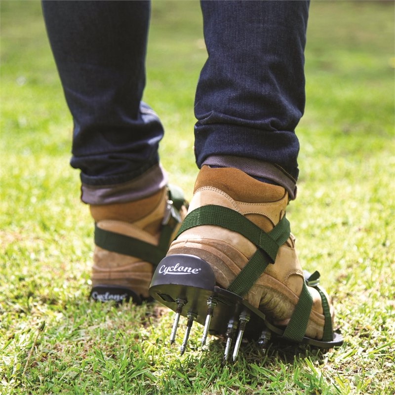 잔디는 그냥 심어만 둔다고 잘 자라지 않습니다. 꼭 해줘야 하는 작업 중 하나가 에어레이션 작업입니다. 바로 땅에 구멍을 뚫어 잔디가 숨을 쉴 공간을 만들어 주는건데요. 골프장에서는 필수적으로 하는 작업입니다. 에어레이션 신발을 이용한다면 집 앞마당을 산책하면서 작업 할 수 있습니다. 잔디 새싹이 나오기 시작하는 이른 봄에 물을뿌리고 난 후나 비가 온 다음날 사용하면 좋습니다.